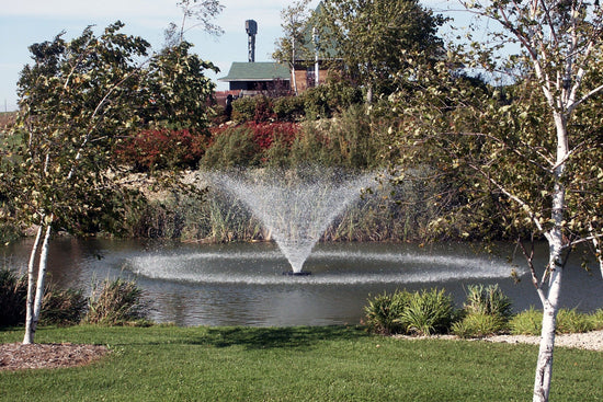 FREE SHIPPING! Beautiful V-display for aerating 3/4 acre pond. Maybe more. Kasco recommends aerating pond fountains to be 1HP for every 3/4 HP of pond size, but sometimes you can do more with less. Call with questions. Please note this is the 120v model. The 4400VFX features a 4-prop propeller for extra aeration! Beautiful pond fountain and highly-energy-efficient.