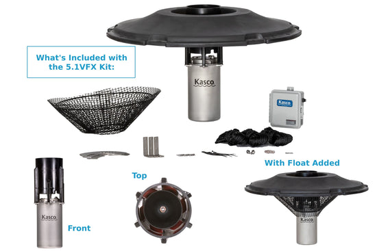 Designed to provide optimum performance and a stunning display for large ponds, Kasco’s 5.1VFX (Single phase) & 5.3VFX (3 phase) expands the proven VFX line into a 5HP model.