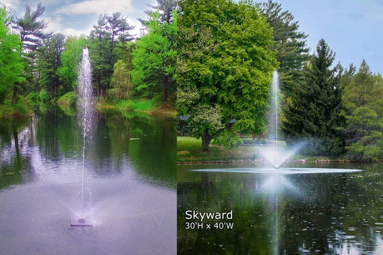 The Triad gives you the choice between the more traditional geyser style of the “Gusher” nozzle, or a more elegant cascading pattern such as the “Cambridge” and “Skyward” nozzles. All three will provide a dynamic, aesthetically pleasing addition to your pond or lakescape while helping to maintain water clarity, oxygen levels, and overall promoting a healthy aquatic environment.