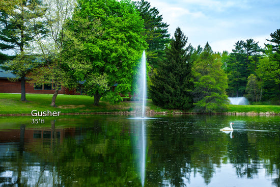 - Gusher provides an adjustable vertical column spraying up to 32'H