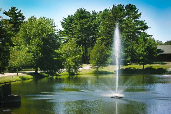 Now with FREE SHIPPING! There’s nothing that compares to the beauty of flowing water, and the cascading water of the Skyward fountain sounds as beautiful as it looks. The wide, cone-shaped spray of the Skyward surrounds a powerful column created by an all-brass, precision-machined nozzle. The center spray of the Skyward can be easily adjusted for height, making this an ideal fountain for commercial and residential applications. Available in both ½- and 1½-hp versions, the Skyward adds beauty while providing a healthy aquatic environment through oxygen transfer and water circulation. The wide, spreading display of the Skyward will beautifully fill any lake scene. The center stream reaches heights up to 20 feet in the ½-hp version.