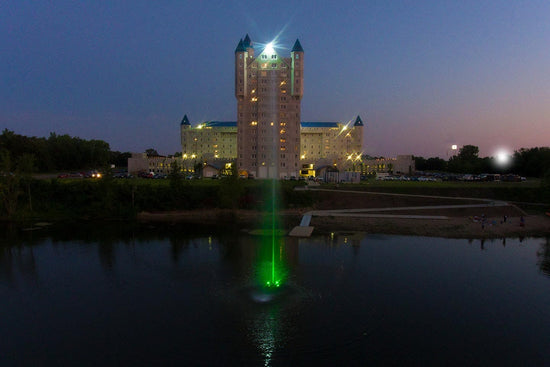 Want a water display above all others? The Scott Jet Stream Fountain achieves a tight, columnar, vertical spray up to 80 feet! The single, stunning flume produced by the Jet Stream adds an eye-catching, ear-pleasing focal point to your lake or pond. Enhance it even more with nighttime lighting options.